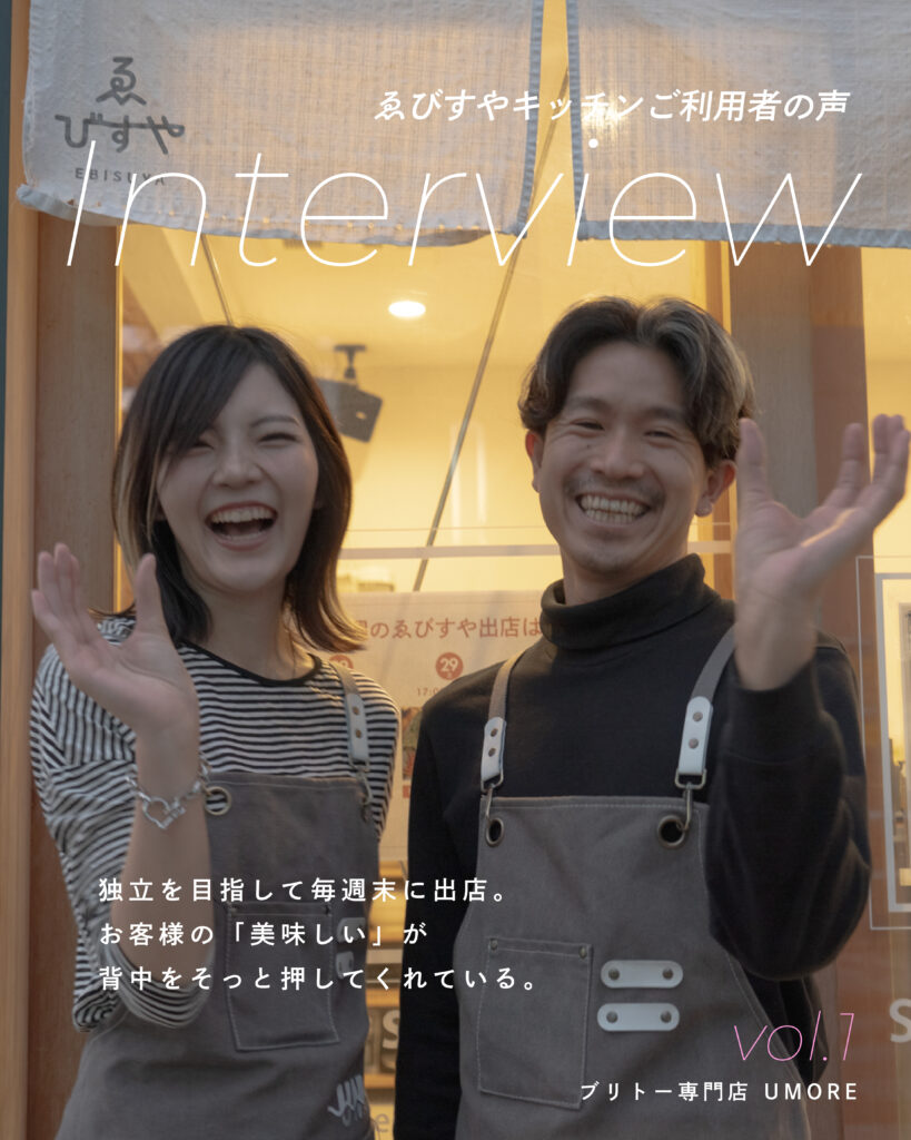 “山梨でシェアキッチンを探している中で偶然ゑびすやさんを見つけました。キッチンとしての利用はもちろん、実際にそのまま販売ができることに大きなを魅力を感じました。おしゃれな雰囲気と立地の良さも利用のきっかけ!ガラス張りの店舗なので外からも見えやすく、自然と注目していただける環境だなぁと思います。”